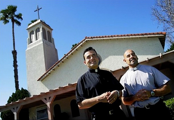 Dos sacerdotes verbitas argentinos fueron agasajados con hurras y aplausos al bajar de su coche, como sucede con las estrellas del espectáculo. Estos curas son de la parroquia Reina de los Ángeles de Riverside, California (Estados Unidos).